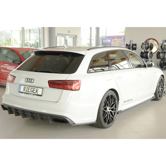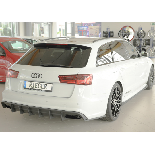 Vložka zadního nárazníku Rieger Tuning určená pro Audi A6 Typ 4G / C7, karoserie Sedan, od 09/14. Vyrobena z ABS plastu bez povrchové úpravy (určeno k lakování). Balení obsahuje montážní materiál.