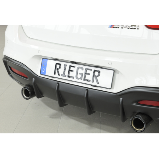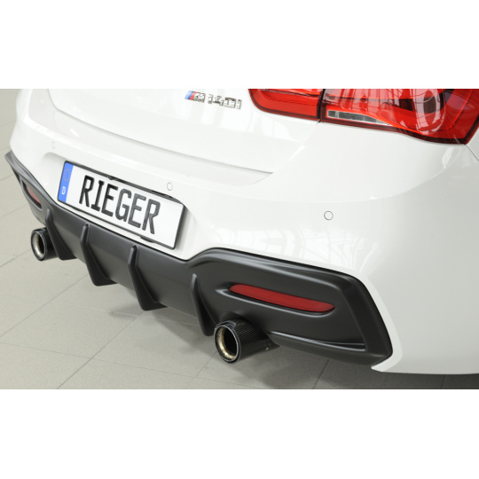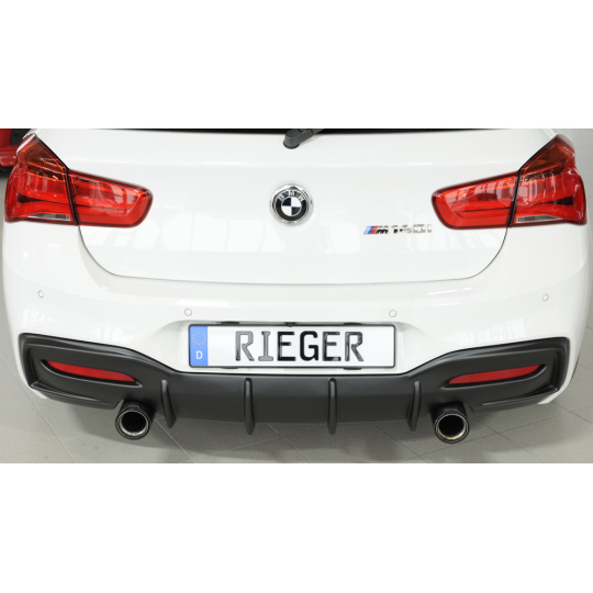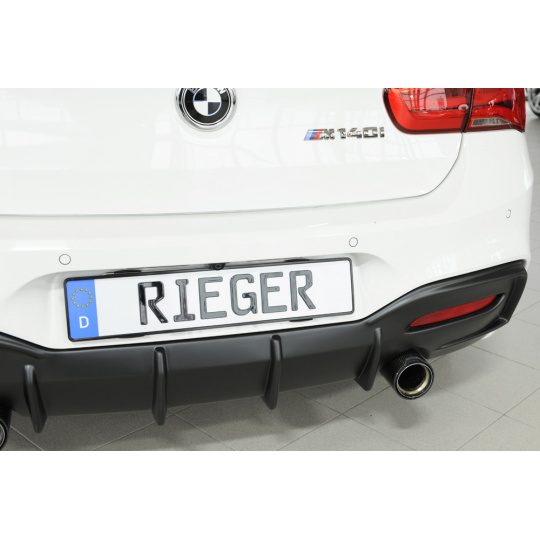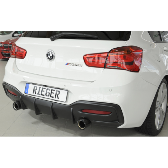 Vložka zadního nárazníku Rieger Tuning určená pro BMW řada 1 Typ F20 / F21 po faceliftu LCI, karoserie sedan / 2-dvéř., sedan / 4-dvéř., od 05/2015. Vyrobena z ABS plastu bez povrchové úpravy (určeno k lakování). Součástí balení je montážní materiál.