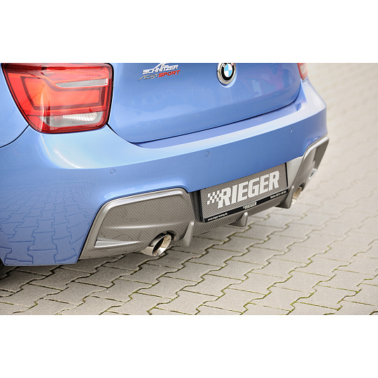Rieger vložka zadního nárazníku pro BMW řada 1 F20, F21 sedan / 2-dvéř., sedan / 4-dvéř. před faceliftem, plast ABS s povrchovou úpravou Carbon-Look, pro orig. koncovky na obou stranách