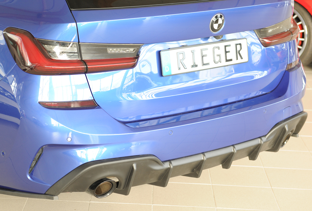 Vložka zadního nárazníku Rieger Tuning určená pro BMW řada 3 Typ G21, karoserie touring, od 03/2019–. Vyrobena z ABS plastu bez povrchové úpravy. Součástí balení je montážní materiál.