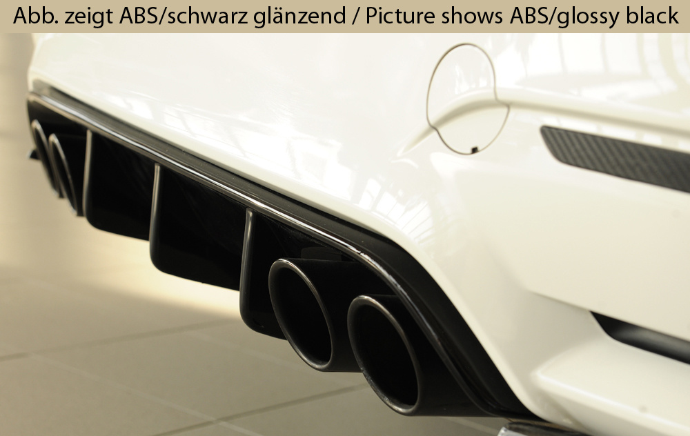 Vložka zadního nárazníku Rieger Tuning určená pro BMW řada 4 M4 Typ F82 (kupé) a F83 (kabriolet). Platí pro ročníky 01/2014– a 07/2014–. Vyrobena z ABS plastu bez povrchové úpravy. Součástí balení je montážní materiál.
