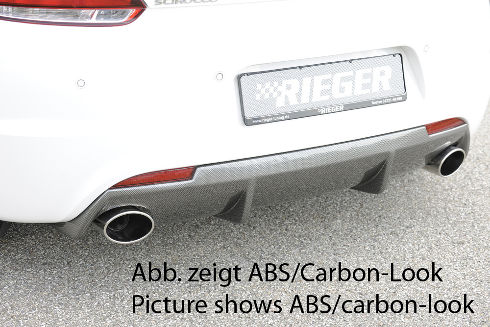 Rieger vložka zadního nárazníku pro R-Line zadní nárazník pro Volkswagen Scirocco R 13 2-dvéř. vč. faceliftu, plast ABS bez povrchové úpravy, pro orig. koncovky na obou stranách