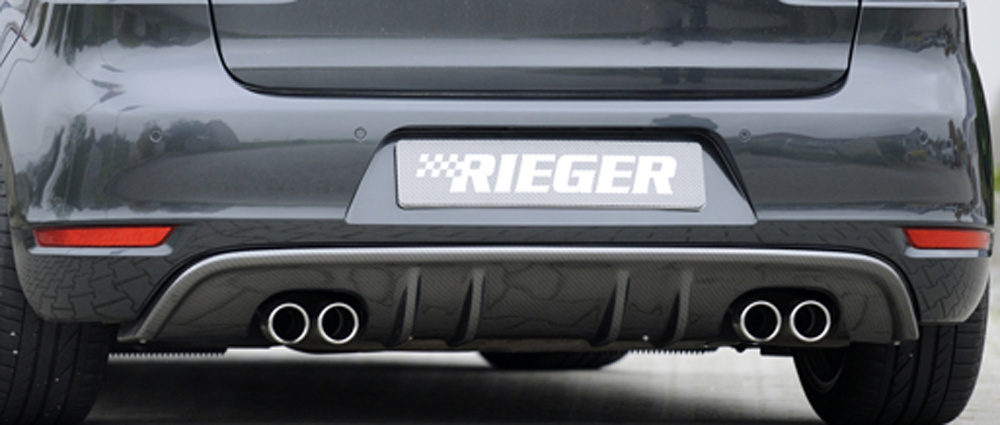 Rieger vložka zadního nárazníku s dvojitými žebry pro Volkswagen Golf 6 vč. GTD 3-dvéř., 5-dvéř., kabriolet, plast ABS s povrchovou úpravou Carbon-Look, pro dvojité koncovky na obou stranách