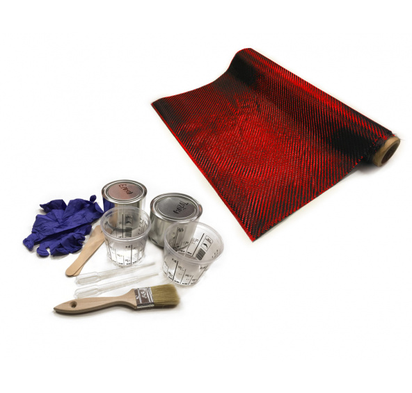 Sada na potahování a výrobu karbonových dílů, 50x100cm - červený / černý karbon