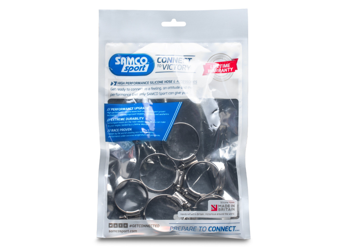 Sada hadicových spon Samco Sport obsahuje spony v potřebném počtu pro montáž hadicové sady Samco.