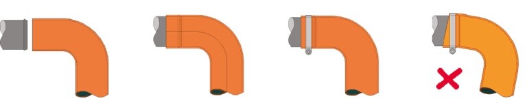 - Hadicové spony musí být umístěny minimálně 10 mm od hrany silikonové hadice a vždy za osazením na přírubě, pokud jím je vybavena.