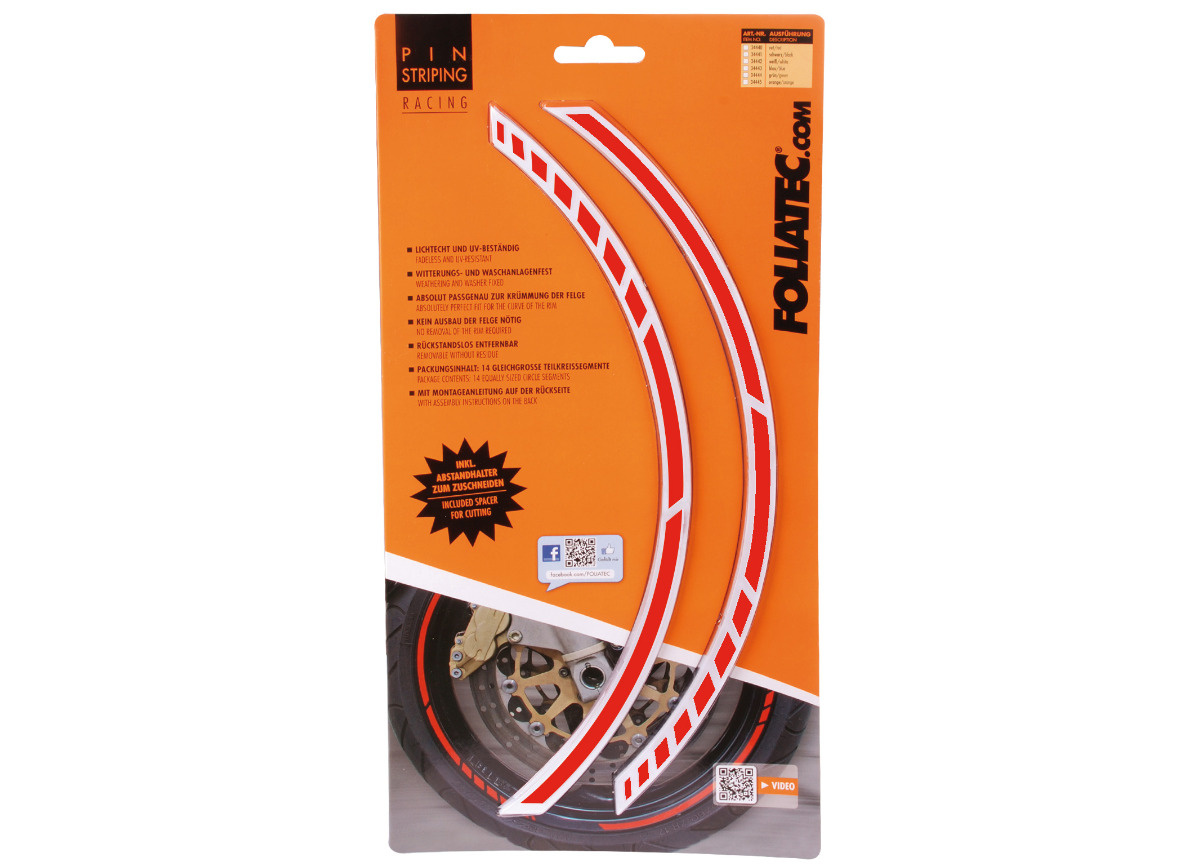 Samolepící proužky FOLIATEC RACING pro 17" kola představují jednoduchý a efektivní způsob, jak dodat sportovní vzhled vašemu motocyklu nebo vozu.