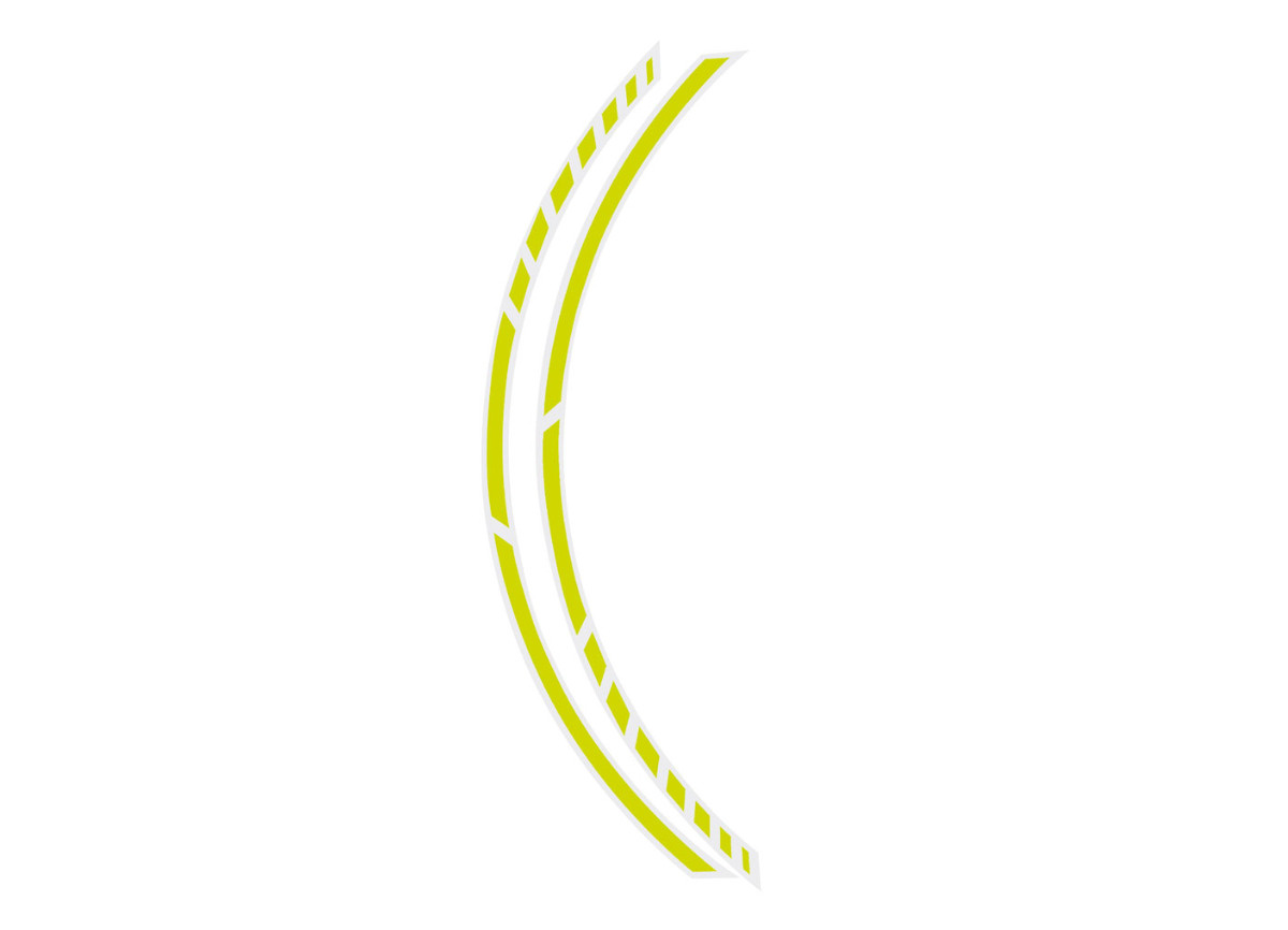 Aplikace: Pomocí přiložené šablony nalepte 3 segmenty na každé kolo. Segmenty můžete vyhladit filcovou stěrkou a následně opatrně odstranit ochrannou krycí fólii.
