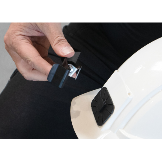Spolu s držákem získáte 3 ks lepicích montážních základů. Základna je opatřena velmi silným lepidlem pod odtrhávací páskou. Čelovka I-VIEW se nacvakne přímo na držák bez dalších upevňovacích zařízení a v případě potřeby ji lze z držáku snadno demontovat.
