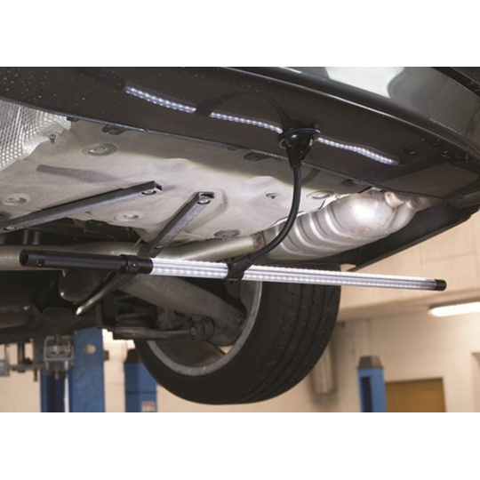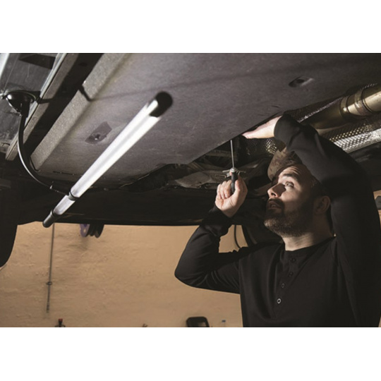 SCANGRIP LINE LIGHT nabízí o 75% více osvětlení než tradiční zářivky. Nová funkce osvětlení DUAL SYSTEM nabízí možnost bezdrátového použití díky nabíjecímu akumulátoru, ale také použití s kabelem o délce 5 metrů, který můžete zapojit do elektrické zásuvky. Díky DUAL SYSTEM dosáhnete neomezených možností pro každý pracovní úkon. Součástí balení je teleskopický držák, který můžete nastavit libovolně v rozmezí 120 - 170 cm, s měkkými pokstrovanými koncovkami ve tvaru háku, díky kterým se nemusíte obávat poškrábání auta či míst, kam budete držák uchytávat.