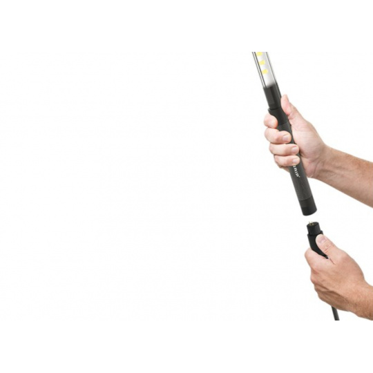 Skladování držáku není náročné na místo, a tak bude teleskopický držák vítaným pomocníkem při Vaší práci. SCANGRIP LINE LIGHT můžete také velmi snadno přichytit do interiéru vozu a použít jej jako pracovní světlo. Možnosti uchycení jsou téměř neomezené. Díky speciálnímu světelnému modulu svítí LINE LIGHT v rozptylovém úhlu 75°, a poskytuje tak mimořádně jasné a intenzivní osvětlení. Zároveň zabráníte nežádoucímu oslnění, protože můžete LINE LIGHT v držáku libovolně otáčet, abyste docílili požadovaného nasvícení pracovního prostoru.