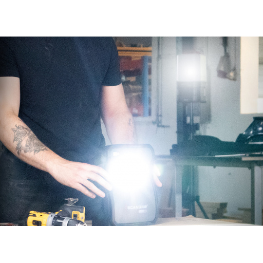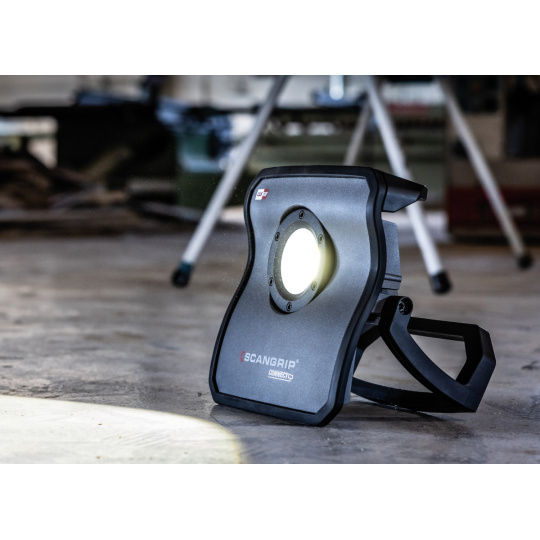 SCANGRIP NOVA 10 CONNECT je extrémně odolný a vodotěsný (IP65). Design je elegantní, s madlem pro přenášení a stojánkem pro flexibilní polohování a přímou montáž na SCANGRIP TRIPOD.