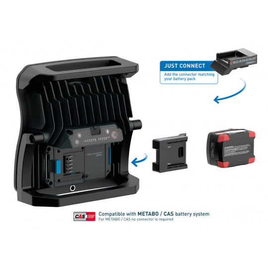 Kompatibilní s METABO / CAS bateriovým systémem a všemi ostatními 18 V/20 V bateriovými sadami pomocí SCANGRIP CONNECTOR