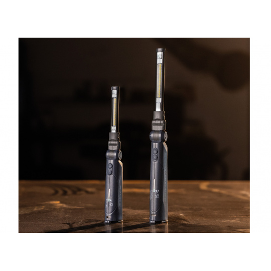 SLIM je navržen do nejužších a nepřístupných pracovních prostor a jeho ultra-tenký světelný pásek o průměru pouhých 9 mm je perfektní pro náročné inspekční práce. Toto LED pracovní světlo je vybaveno vestavěným magnetem a háčkem a má skládací tělo, které umožňuje flexibilní umístění v jakémkoli pracovním prostředí. Díky vysoce účinnému multi-LED designu s 20 LED diodami SLIM nabízí nastavitelný světelný výkon až 500 lumenů. Horní světlo poskytuje mířený paprsek o výkonu 150 lumenů, který precizně osvětluje pracovní prostor. Nastavení OPTILight poskytuje potřebné osvětlení (LUX) v typické pracovní situaci, což zajišťuje optimalizované světlo a dobu provozu jednoduchým dotykem. Toto pracovní světlo poskytuje konstantní lumenový výkon podle evropské normy EN 13032-1.