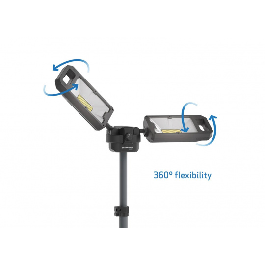 TOWER 8 CONNECT je stativ se dvěma vestavěnými světlomety poskytujícími až 8000 lumenů. Díky dvěma 360° flexibilním a otočným světlometům mohou být světla umístěna v mnoha různých polohách. Je rozšiřitelný až na 2 metry a má 2 úrovně světelného výkonu (50-100 %).