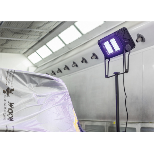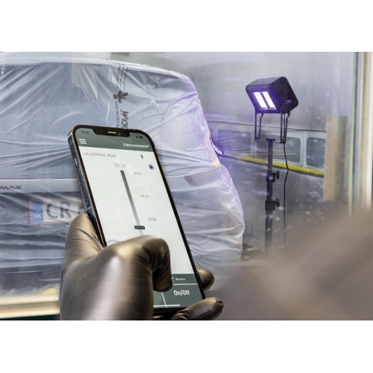 SCANGRIP UV-EXTREME je 3krát výkonnější než současná UV světla. Světlo pro velmi rychlé a vysoce účinné UV vytvrzování větších ploch až do rozměru 135 x 130 cm. Vestavěná funkce BLUETOOTH umožňuje bezpečné a snadné ovládání lampy na dálku, dokonce i ve skupinách až 4 jednotek současně. S použitím aplikace poskytuje bezpečnou aktivaci na dálku, aby se zabránilo fyzické blízkosti UV záření při procesu vytvrzování. Využití UV technologie vytvrzování umožňuje pracovat rychleji a efektivněji, protože doba vytvrzování mezi jednotlivými operacemi se výrazně zkracuje.