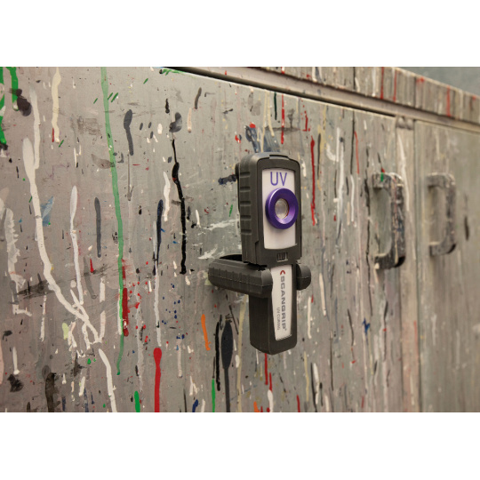 SCANGRIP UV-LIGHT je snadno přenosná UV lampa od dánské společnosti SCANGRIP a je určena pro malé a střední oblasti vytvrzování. Je dodávána s otočným pevným hákem a vestavěným magnetem. Lampu můžete kdykoli přichytit ke kovovému povrchu a nasměrovat přesně podle vašich potřeb! Na zadní strané navíc naleznete praktický, robustní, otočný hák na zavěšení, například za pracovní opasek. Lampa má velmi odolnou konstrukci. Samozřejmou součástí je čočka lampy, která je odolná všem typům rozpouštědel! Inteligentní indikátor baterie vás informuje o stavu baterie.