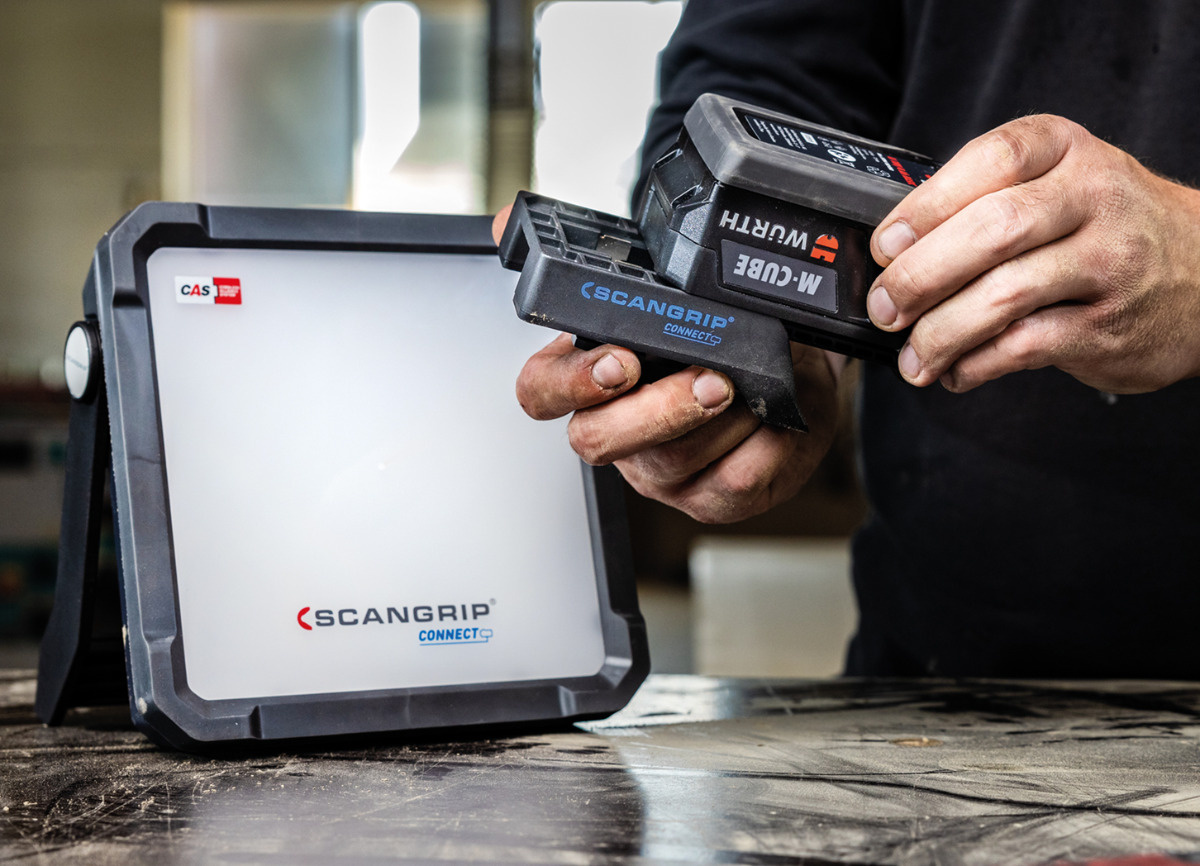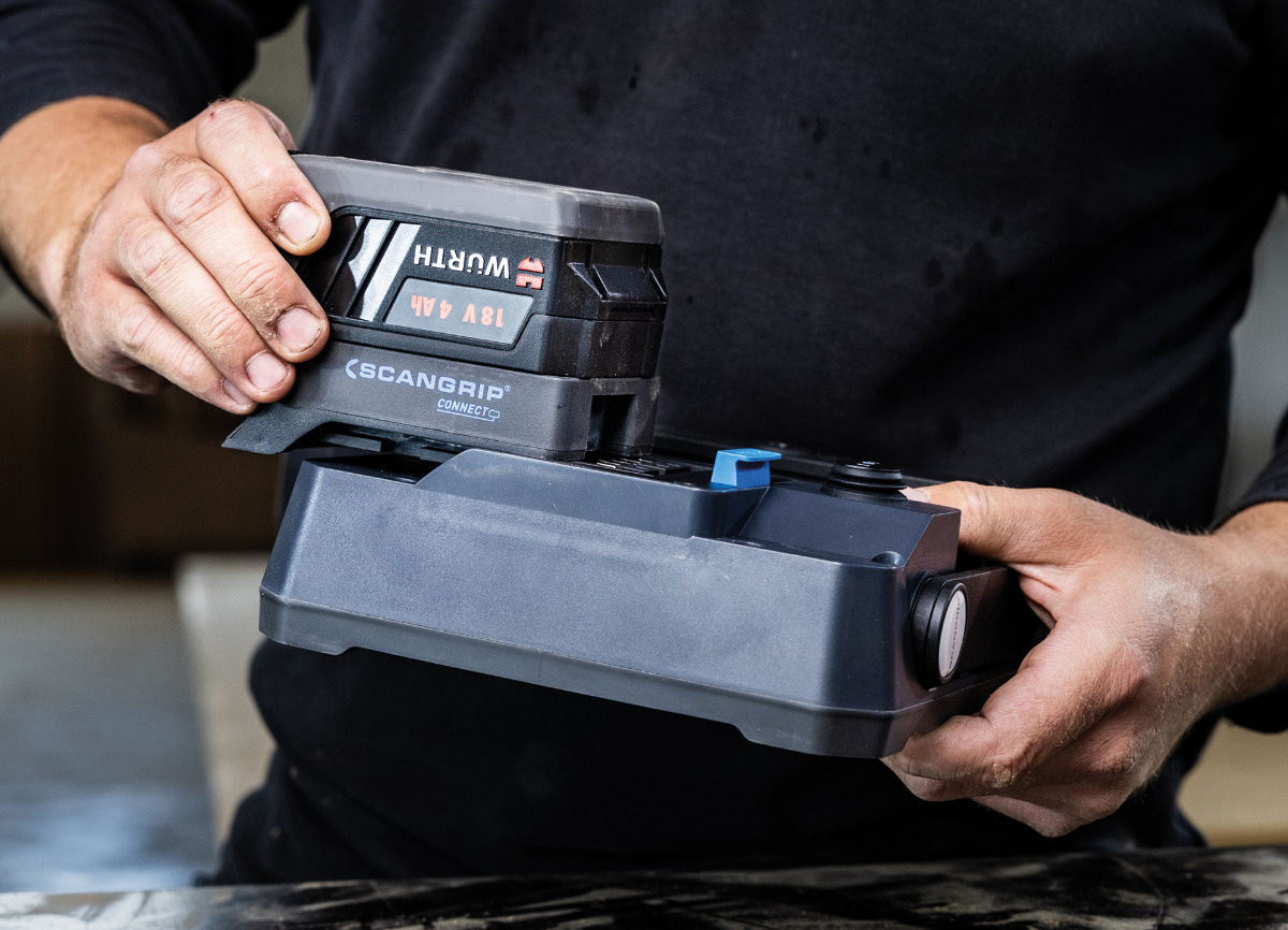VEGA 2 CONNECT je kompatibilní s METABO / CAS bateriovým systémem 18 V a všemi ostatními 18 V/20 V bateriovými sadami předních značek elektrického nářadí pomocí SCANGRIP CONNECTOR.