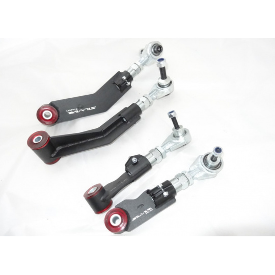 Zadní kontrolní ramena Silver Project pro BMW E39/E60 umožňují nastavení odklonu zadních kol až po -5 stupňů. Jsou také osazena polyuretanovými silentbloky o tvrdosti 75 ShA.