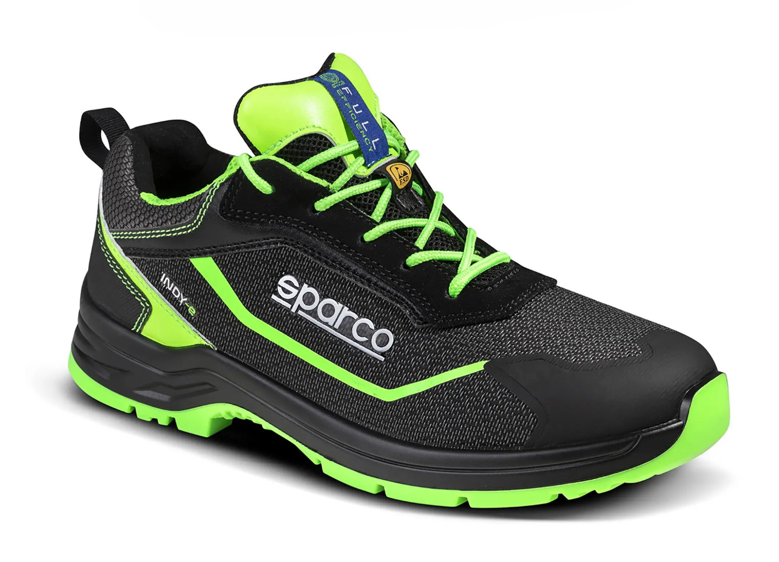 Bezpečnostní obuv splňující novou normu EN ISO 20345:2022, vyrobená ze speciálního regenerovaného materiálu Sparco® FULL EFFICIENCY odolného proti oděru. Podešev „FlexGrip+“ z dvouhustotního PU s patní částí splňující požadavky pro protiskluz na žebříku (LG). Lehká, ekologická a odolná obuv pro jakékoliv pracovní prostředí.