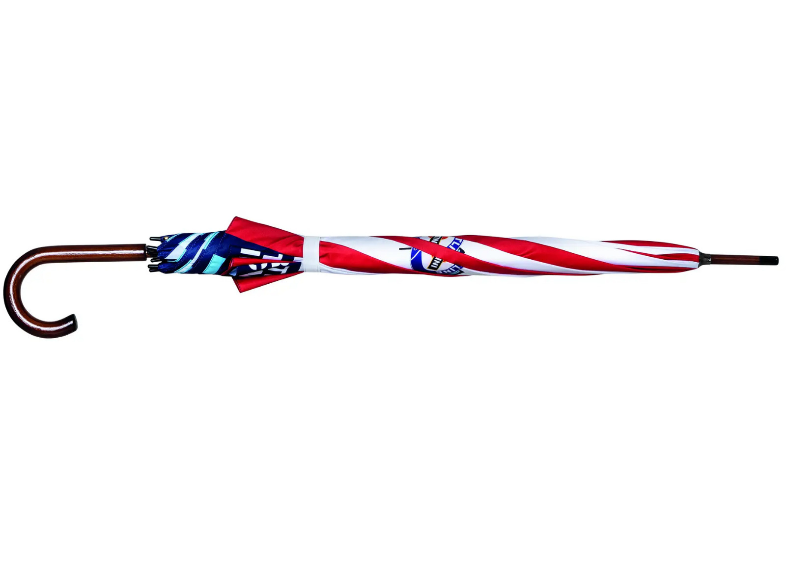 Deštník Replica 80s s automatickým otevíráním a dřevěnou rukojetí kombinuje ikonický styl pruhů Martini Racing vytištěných ve vysokém rozlišení s ultralehkou technologií laminátových lamel.