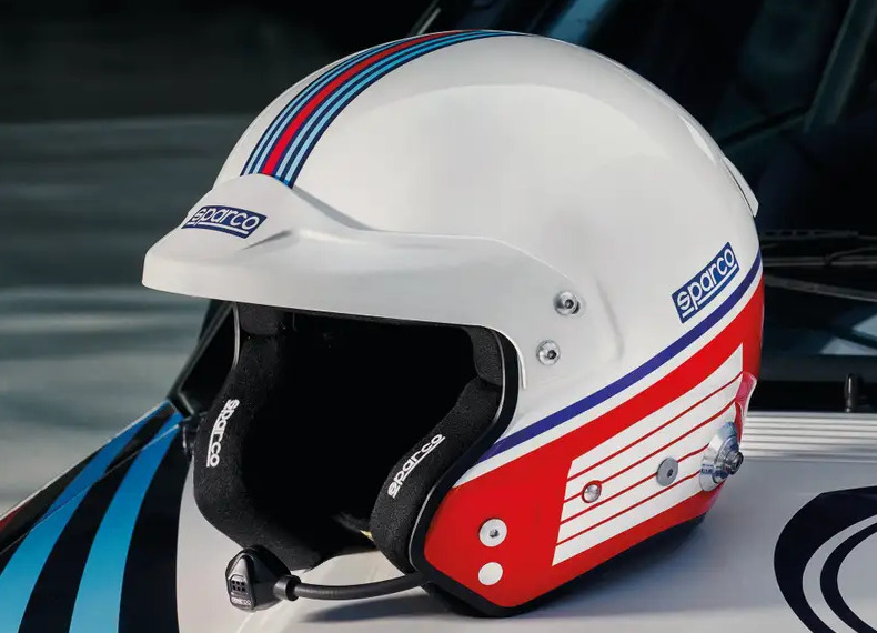 Sparco helma AIR PRO RJ-5i Martini Racing, s interkomem a homologací FIA, velikost XL