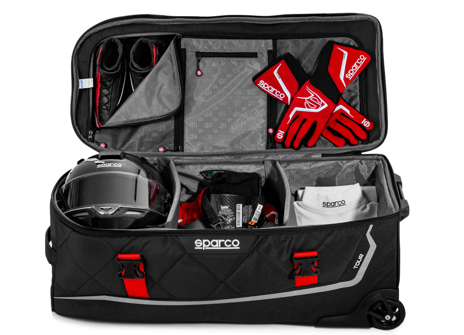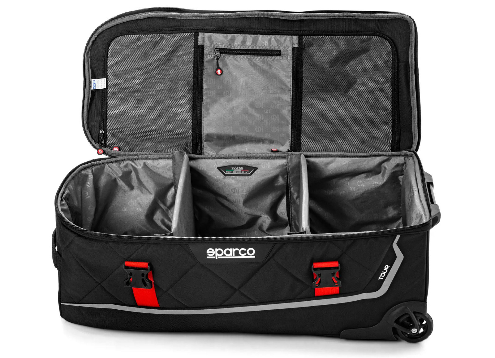 Funkční a odolná cestovní taška Sparco, navržená pro maximální pohodlí, organizaci a inspiraci motorsportem.