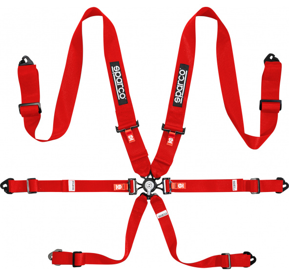 Popis výrobku Sparco šestibodový bezpečnostní pás s homologací FIA, barva: červená