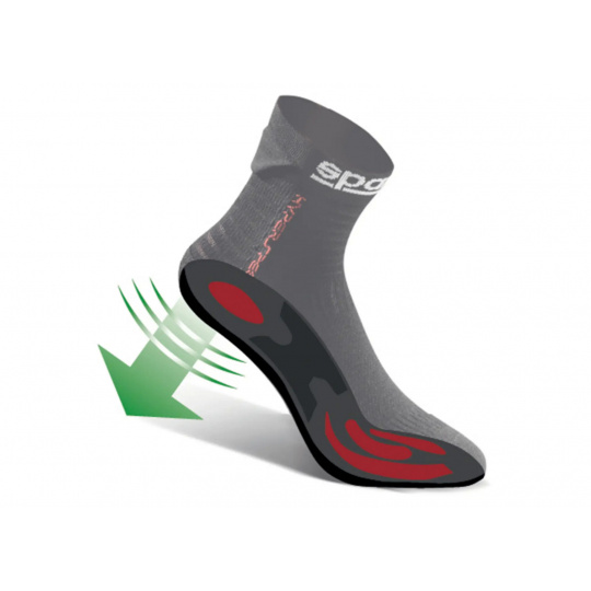 Nylonová ponožka z mikrovlákna s ionty stříbra, hypoalergenní. Maximální prodyšnost a pohodlí. Struktura se silikonovým vláknem pro maximální přilnavost mezi chodidlem a ponožkou. Pata vyztužená Cordura®.