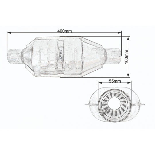 Sportovní rezonátor ve tvaru a obalu shodném s katalyzátorem.
