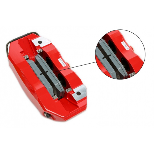 • 2ks 4pístkových brzdových třmenů v červené barvě