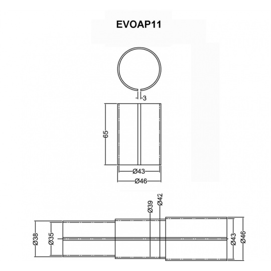 Délka adaptéru je 62mm. Všechny rozměry adaptéru jsou uvedeny v přiloženém výkresu.