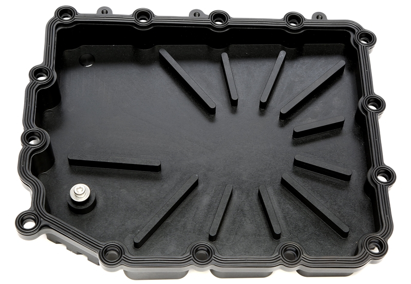 Hliníková žebrovaná vana v černém provedení s větší objemem, nahrazující původní plastovou vanu.