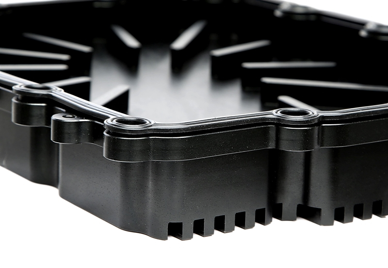 Hliníková žebrovaná vana v černém provedení s větší objemem, nahrazující původní plastovou vanu.