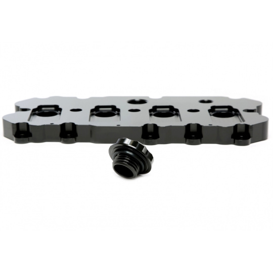 Víko ventilů v černém provedení, frézované na CNC z jednoho kusu z vysoce pevné hliníkové slitiny 6061.