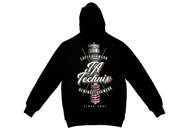 Mikina "klokanka" TA Technix Hoody má vpředu tištěné logo a vzadu vytištěný barevný motiv. Dvouvrstvá kapuce, velká přední kapsa.