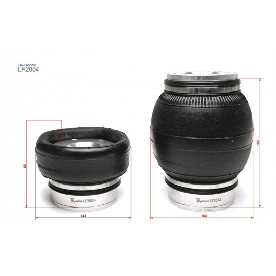 Délka samotného měchu je 166mm, rozměry s přírubami a ve stlačeném stavu jsou uvedeny v kótách na druhém obrázku.
