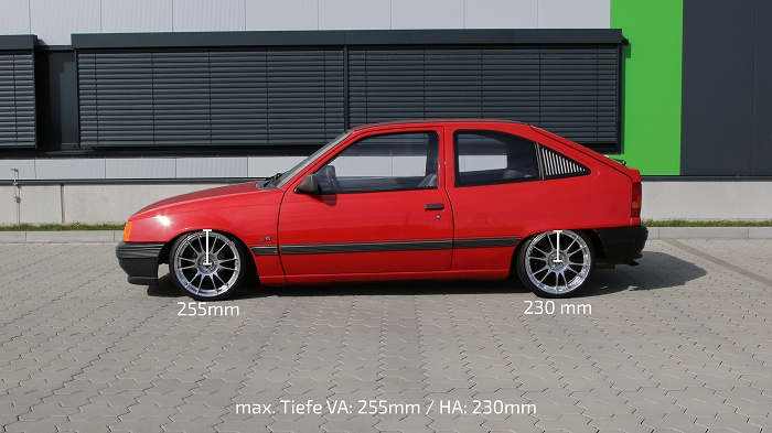 TA Technix kompletní vzduchový podvozek - Airride pro vůz Opel Kadett E 3dv, 5dv, cabrio (84-91) kromě caravan a pickup je připravený s veškerým potřebným ovládáním a instalačním materiálem k montáži do vašeho vozu a navíc s TUV homologací.