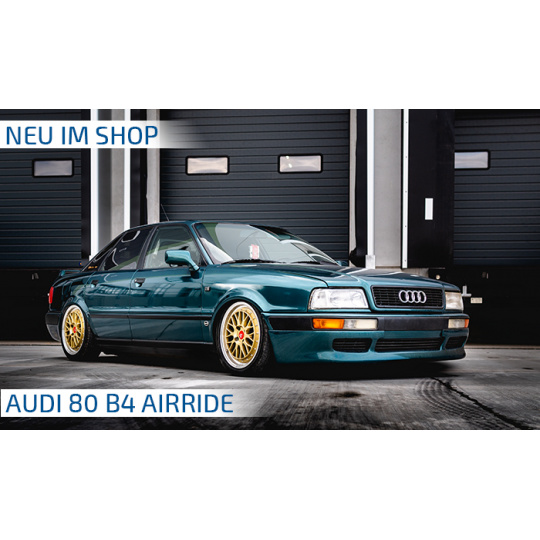 TA Technix kompletní vzduchový podvozek - Airride pro vůz Audi 80 + Avant (typ B4, 1991 - 1996) kromě Quattro / S2 / RS2 je připravený s ovládacím managementem a instalačním materiálem k montáži do vašeho vozu a navíc s TUV homologací.