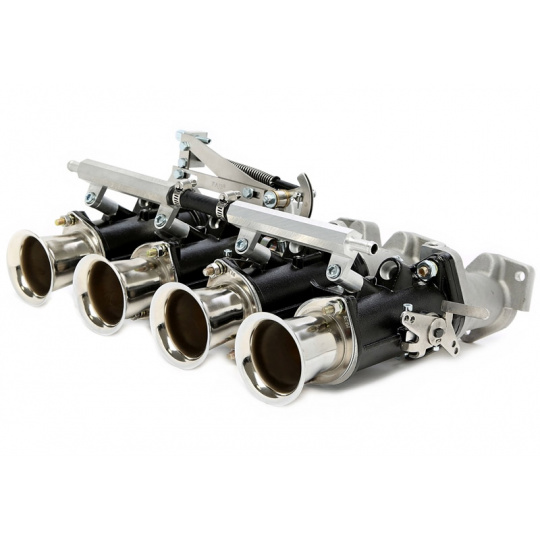 Sada sacích svodů a škrtících klapek pro karburátory 45mm DCOE a motory VW 2.0 8V s křížovým tokem.
