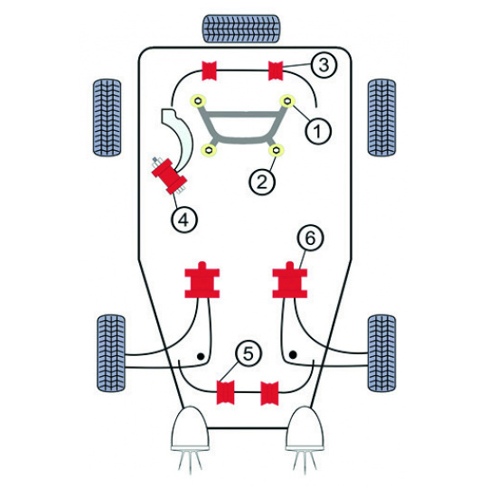 Pozice silentbloků na podvozku je zobrazena na přiloženém schématu - pozice č. 3.