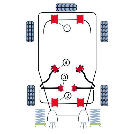 Pozice silentbloků na podvozku je zobrazena na přiloženém schématu - pozice č. 2.