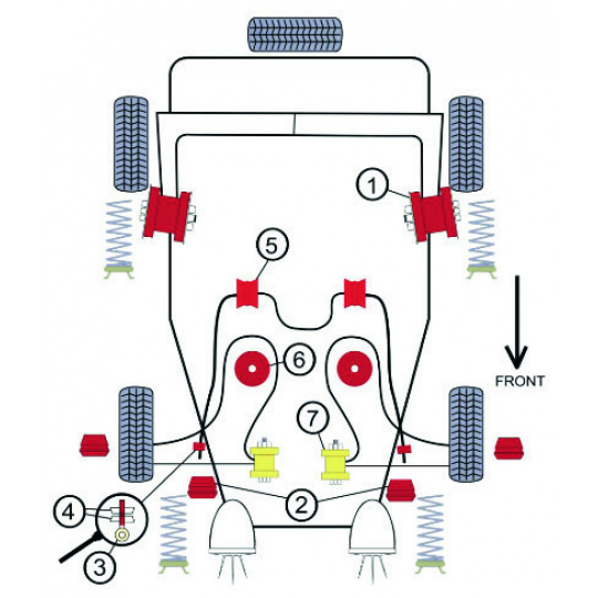 Pozice silentbloků na podvozku je zobrazena na přiloženém schématu - pozice č. 2.