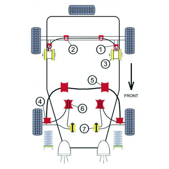 Pozice silentbloků na podvozku je zobrazena na přiloženém schématu - pozice č. 3.