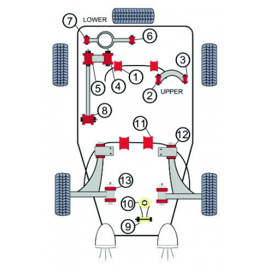 Pozice silentbloků na podvozku je zobrazena na přiloženém schématu - pozice č. 2.