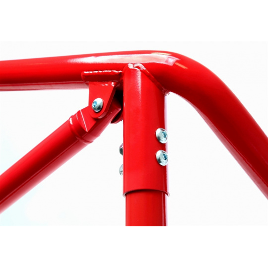 Rám je ocelový, šroubovaný, váha cca 25kg. Hlavní rám je z trubek o průměru 45mm, křížové vzpěry jsou z trubek o průměru 40mm.
