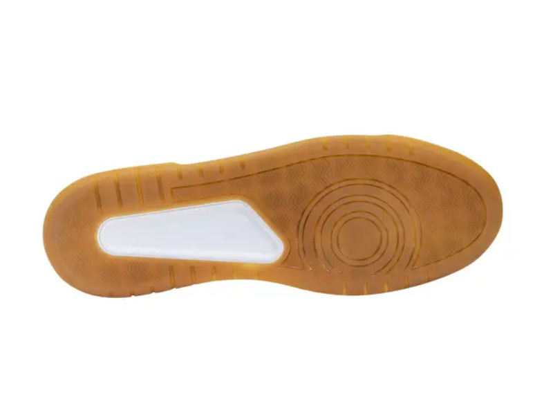 Tenisky ve stylu 80. let. Bílá a jantarová gumová podrážka. Svršek z mikrovlákna. Podšívka s vycpávkou kolem kotníku.