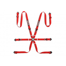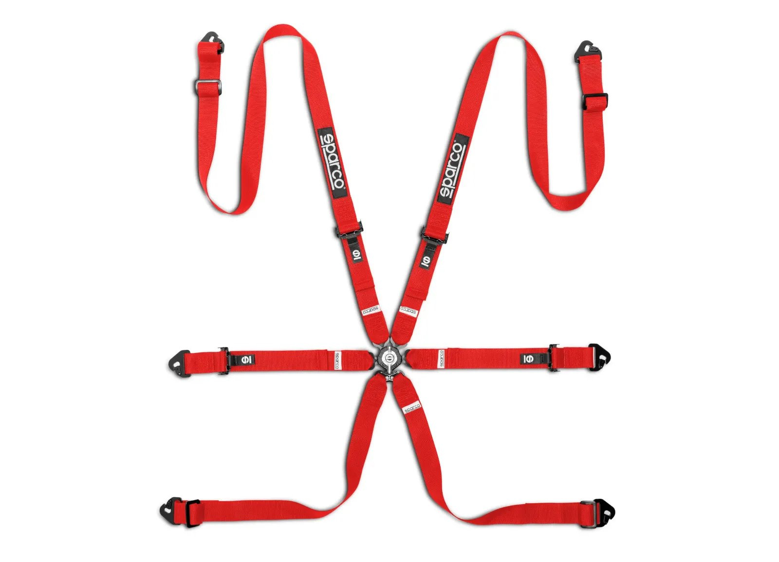 Závodní 6bodový pás Sparco Competition H-2 PU, homologace FIA, barva: červená