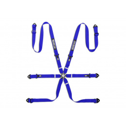 Závodní 6bodový pás Sparco Competition H-2 PU, homologace FIA, barva: modrá