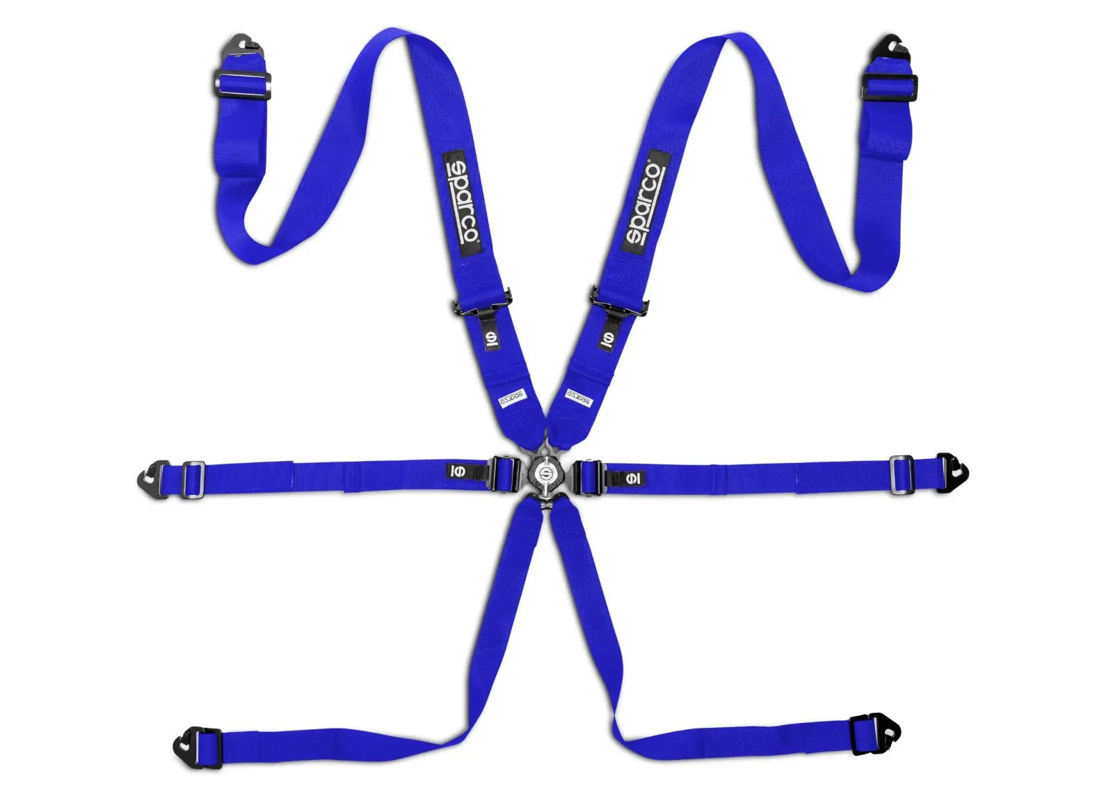 Závodní 6bodový pás Sparco Competition H-3 Steel, homologace FIA, barva: modrá